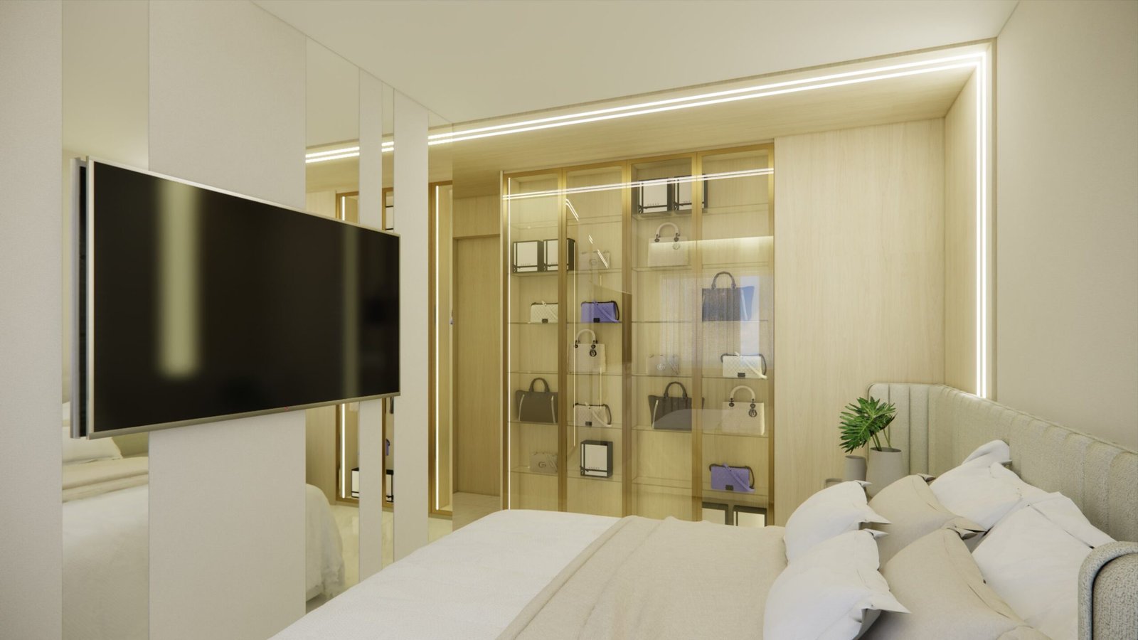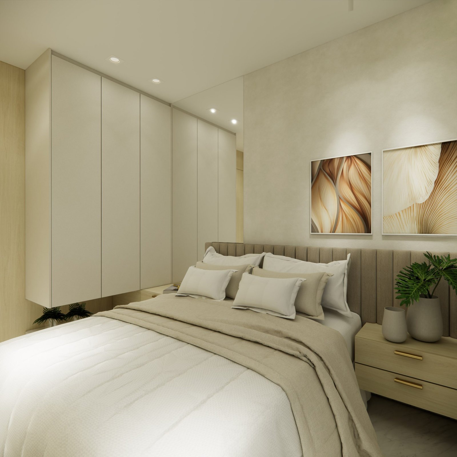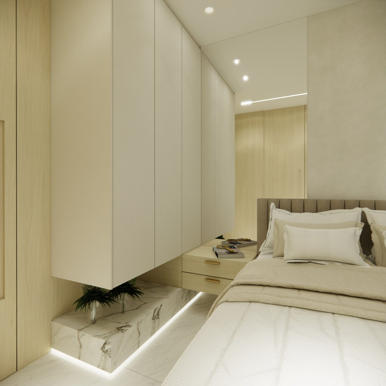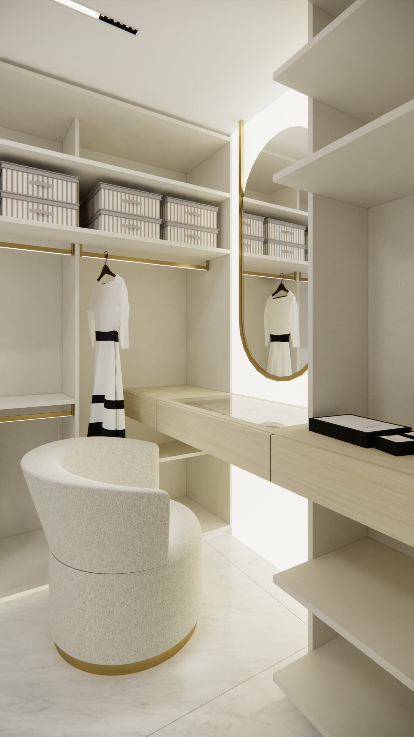 A suíte master, um dos destaques do projeto, inclui um elegante closet e uma banheira de imersão estrategicamente posicionada para aproveitar a vista panorâmica do Rio Capibaribe, criando uma experiência sensorial única de relaxamento e conexão com a natureza ao redor.