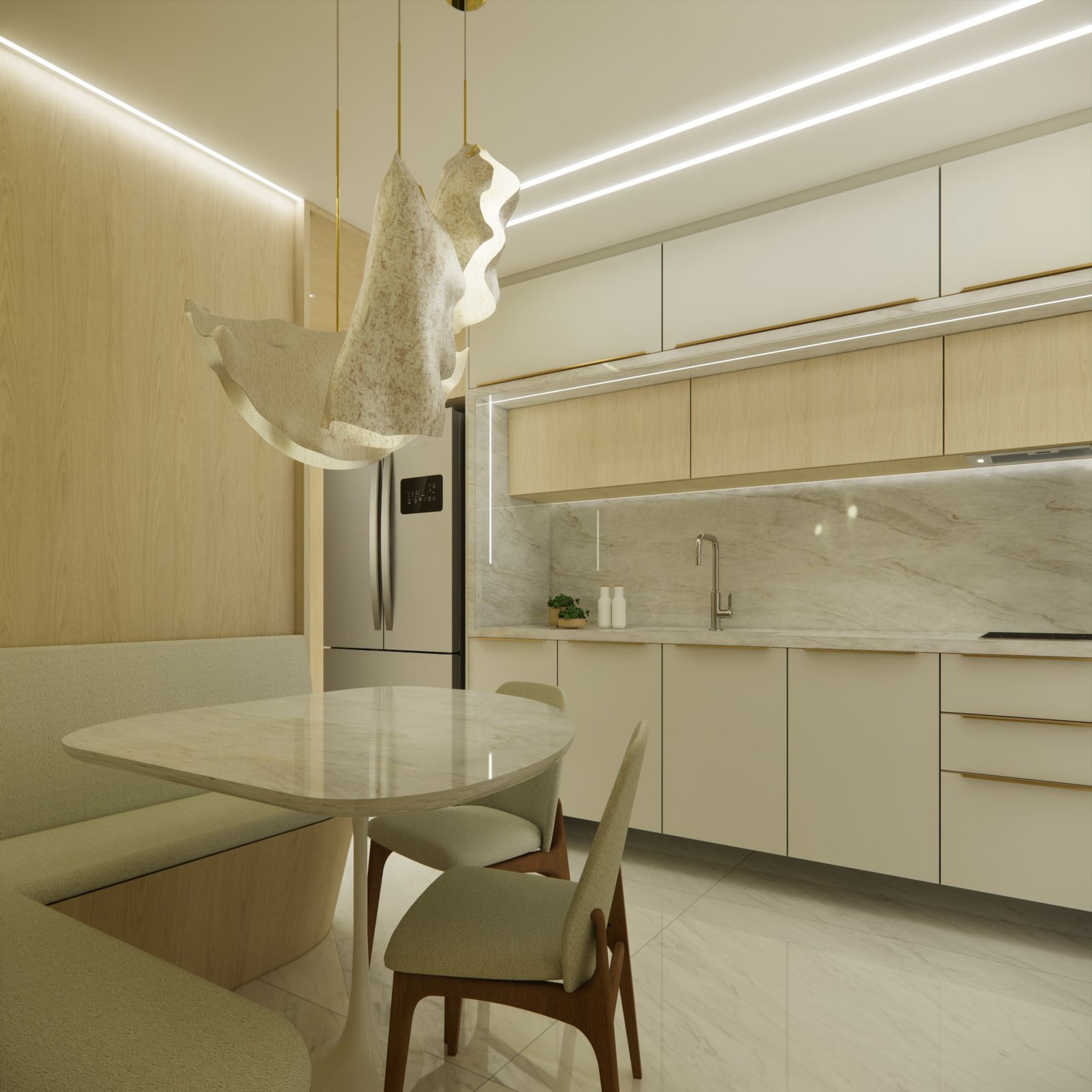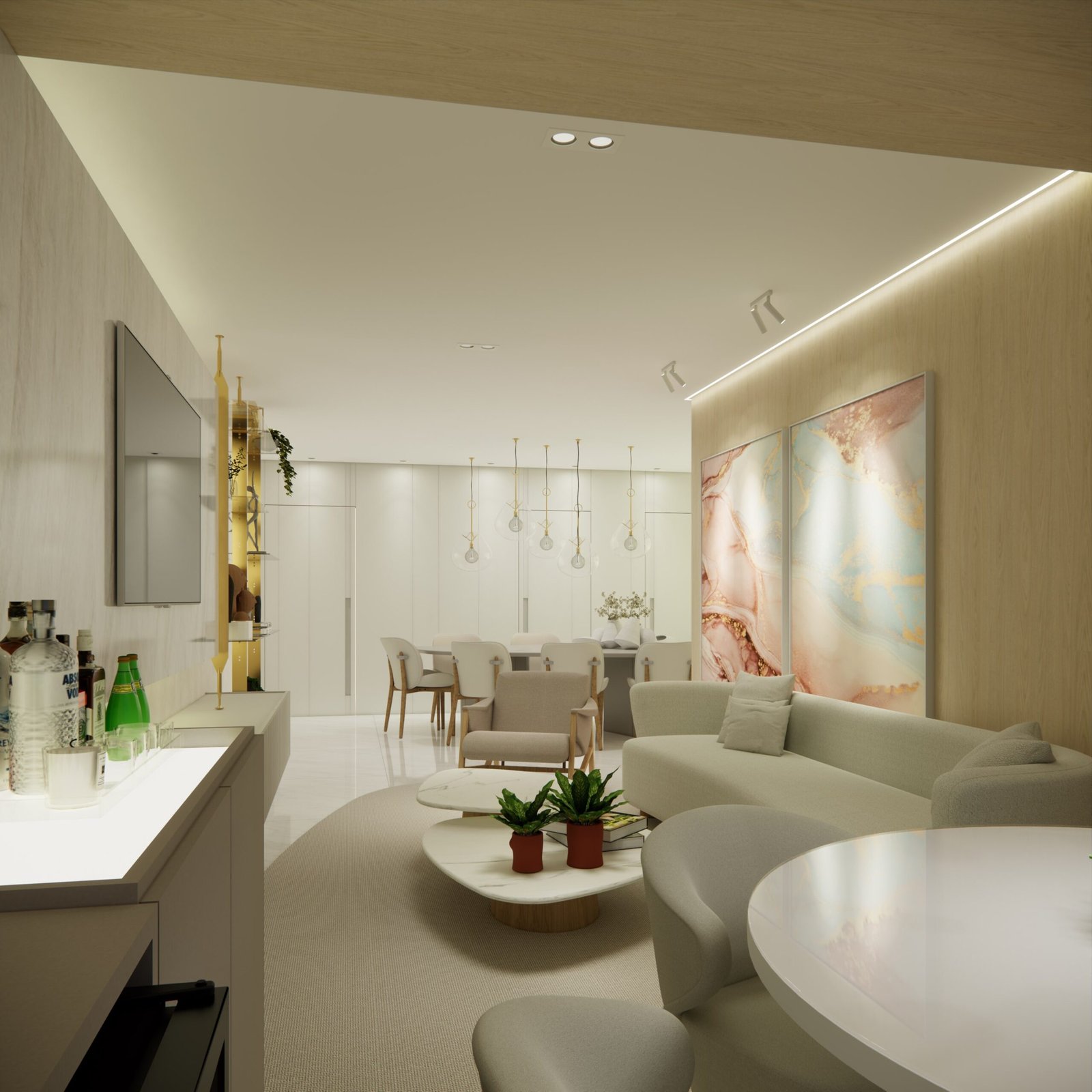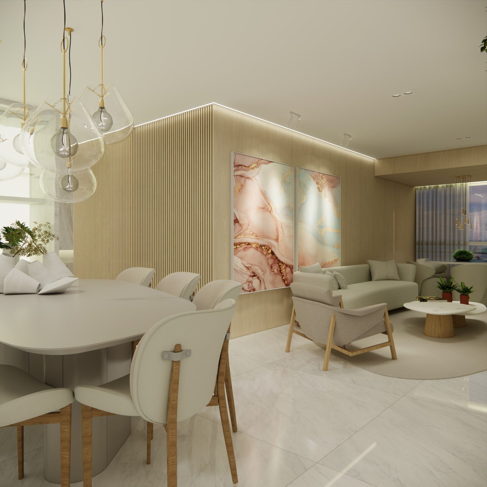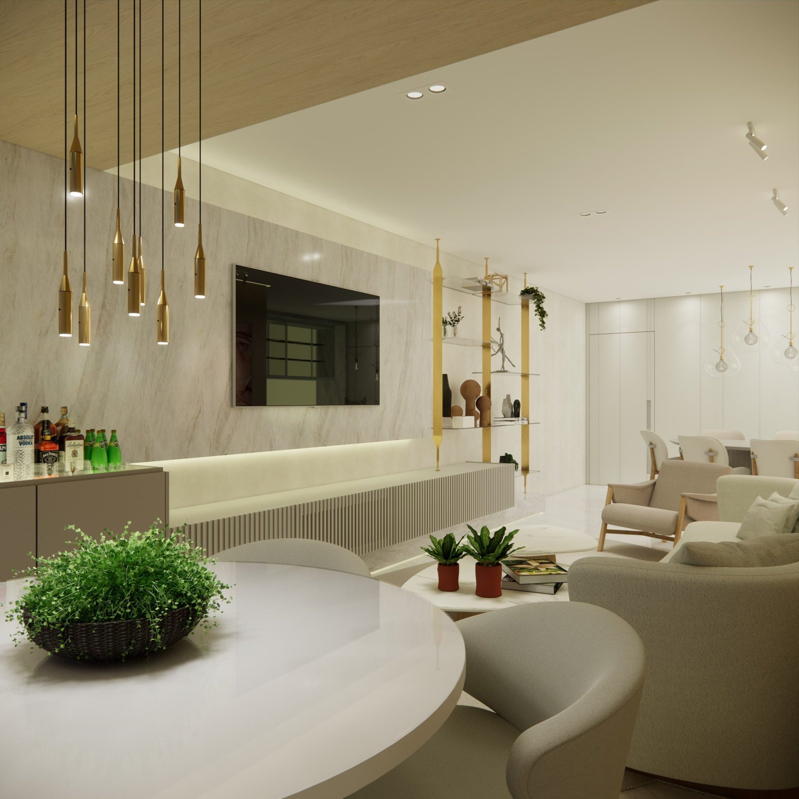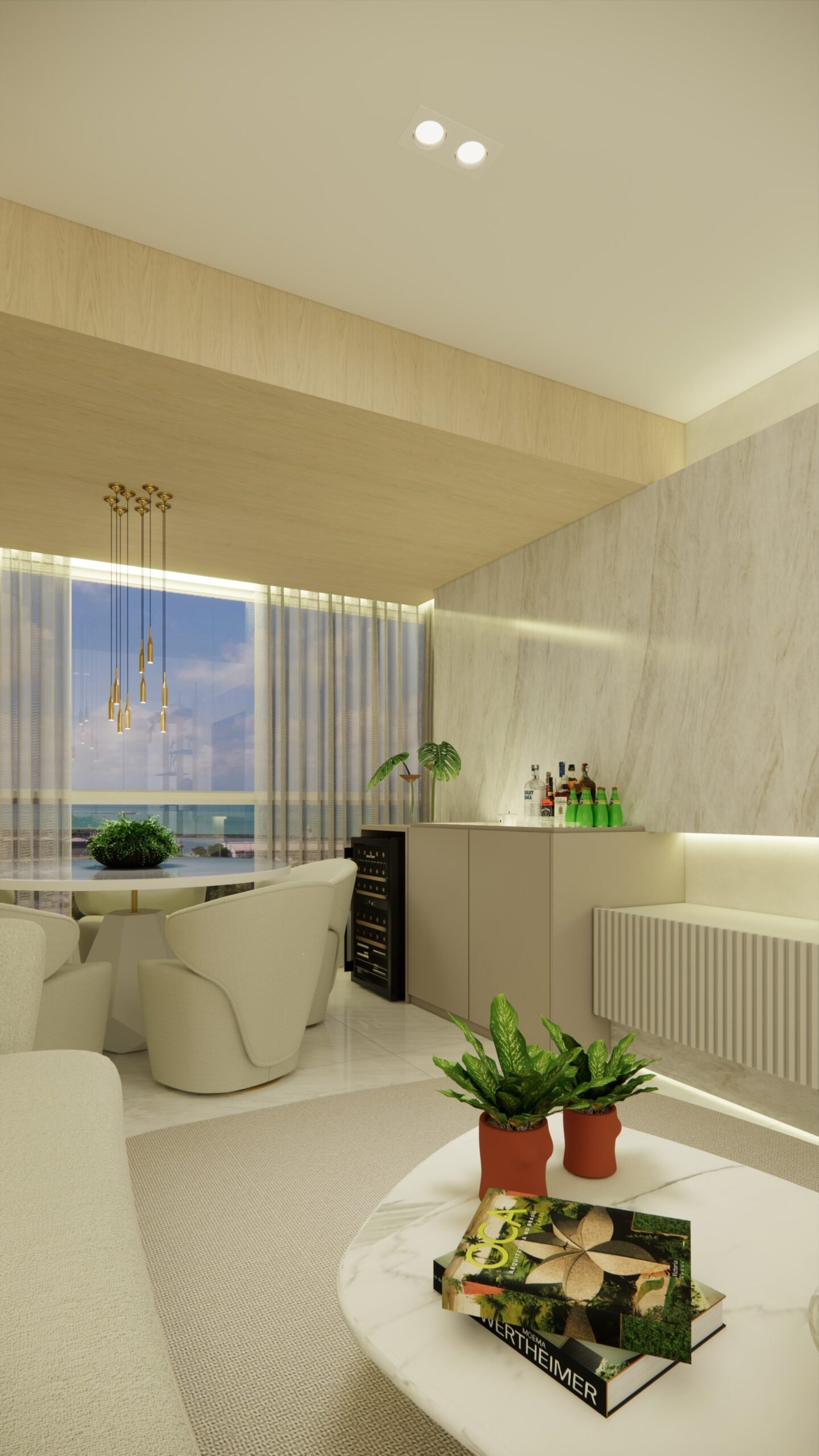A proposta do projeto foi maximizar a integração dos espaços internos com a paisagem externa, utilizando materiais sofisticados e soluções que proporcionam conforto, funcionalidade e sofisticação, elevando a qualidade de vida dos moradores.