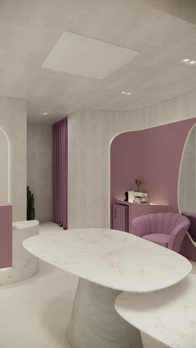 As formas orgânicas presentes em todo o espaço evocam a sensualidade sutil das curvas femininas, em harmonia com o movimento das ondas do mar, o desenho imprevisível da areia moldada pelo vento e a suavidade da brisa que percorre o litoral. Essa inspiração traduz-se em uma arquitetura fluida, que acolhe e convida à permanência, criando uma atmosfera sensorial e envolvente.